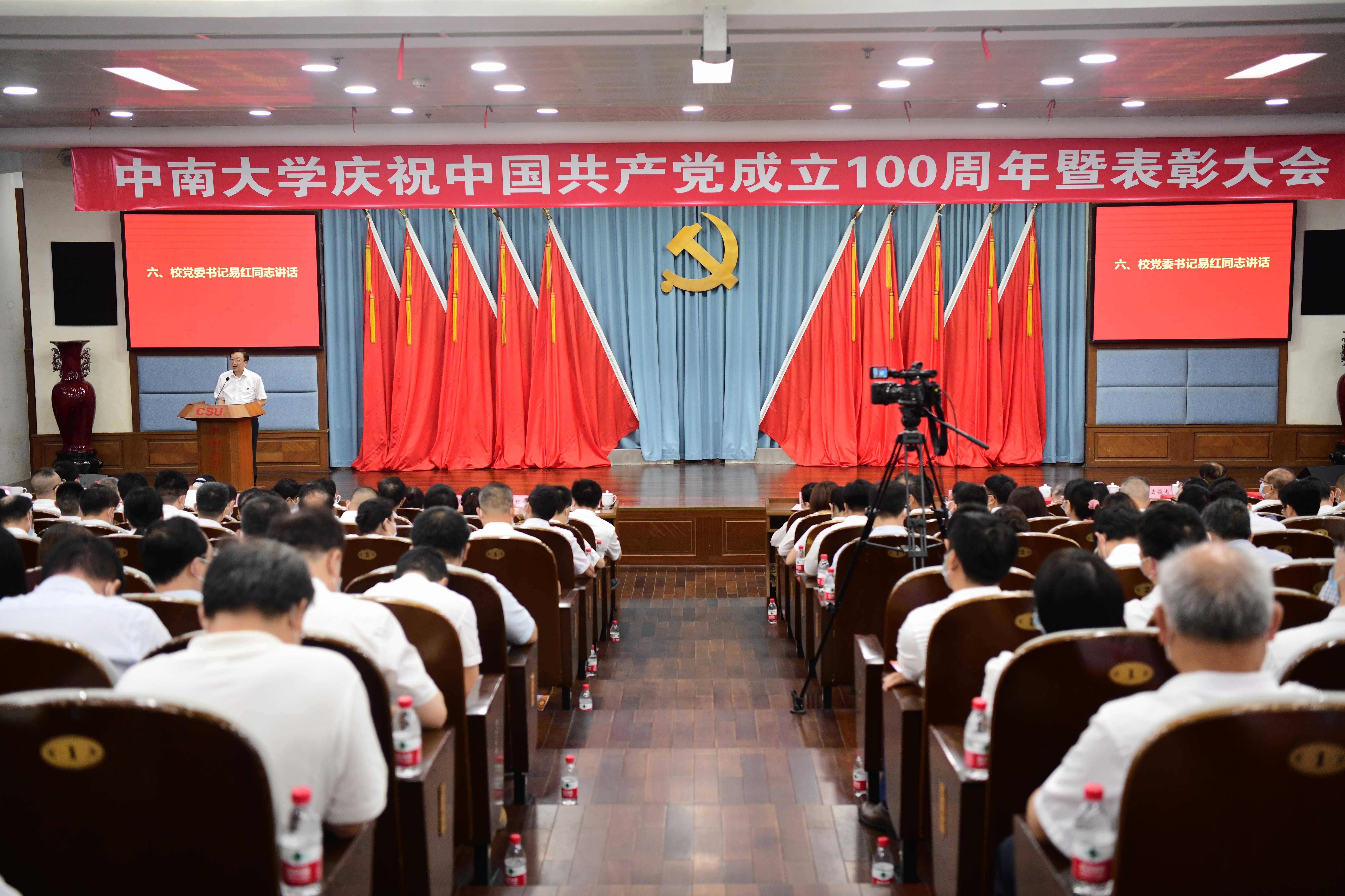本网讯 6月29日下午,AC米兰中文官方网站校本部科教楼报告厅内气氛庄重而热烈,主席台上,鲜艳的党旗庄严肃穆,金黄色的党徽熠熠生辉。学校党委在此隆重举行庆祝中国共产党成立100周年暨表彰大会。校领导易红、田红旗、胡岳华、陈春阳、朱学红、伍海泉、李亮、陈翔、郭学益、黄健陵、陈立章,校党委常委马跃如,教育部直属高校党建工作联络员张强,“光荣在党50年”纪念章获得者代表,受表彰的先进集...
